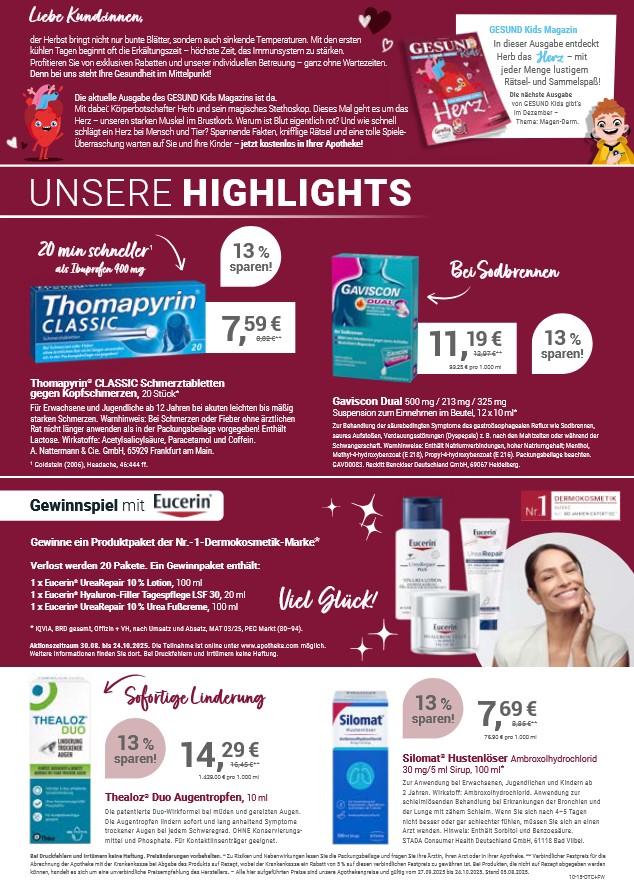 Wir belohnen ihre Treue mit 3 % sofort Rabatt auf alle freiverkäufliche Produkte, ausgenommen aktuelle Angebote.