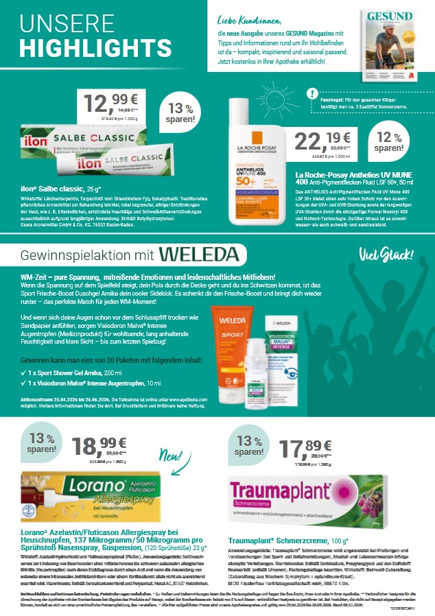 Wir belohnen ihre Treue mit 3 % sofort Rabatt auf alle freiverkäufliche Produkte, ausgenommen aktuelle Angebote.